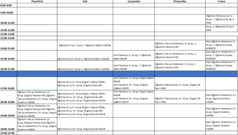 2025-2026 Eğitim Öğretim Yılı Güz Döneminin Ders Programı (Güncellendi)
