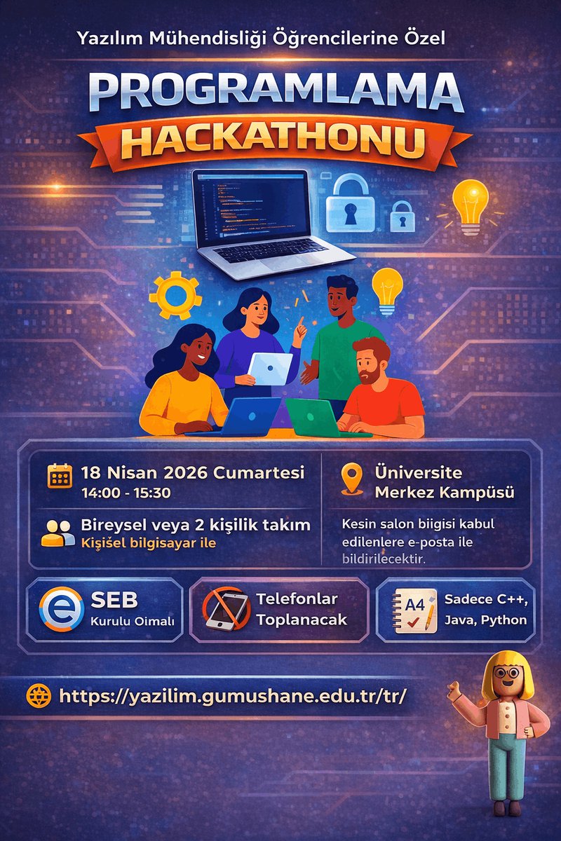 Geleceğin yazılımcıları bir araya geliyor! Mühendislik ve Doğa Bilimleri Fakültesi bünyesinde düzenlenecek olan Yazılım Mühendisliği Programlama Hackathonu için geri sayım başladı.